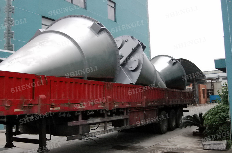 描述:錐形攪拌設備內(nèi)部安裝非對稱傾斜螺旋,雙螺旋自身旋轉,提升物料,并有公轉減速箱驅動,沿錐體中心軸公轉,364度攪拌物料,擁有非破壞性攪拌以及快速且無殘留卸料的特點。該設備配置自轉、公轉分體驅動,內(nèi)外表面做拉絲處理,配置錐體中軸線噴液噴頭,筒體底部配置氣動球面閥,開設投料口、排氣口等。