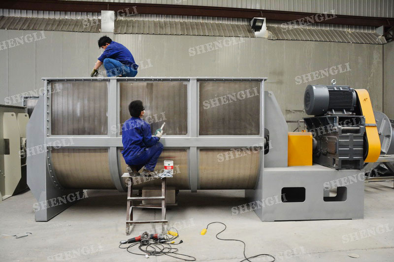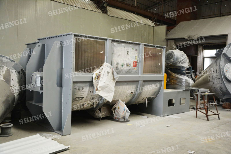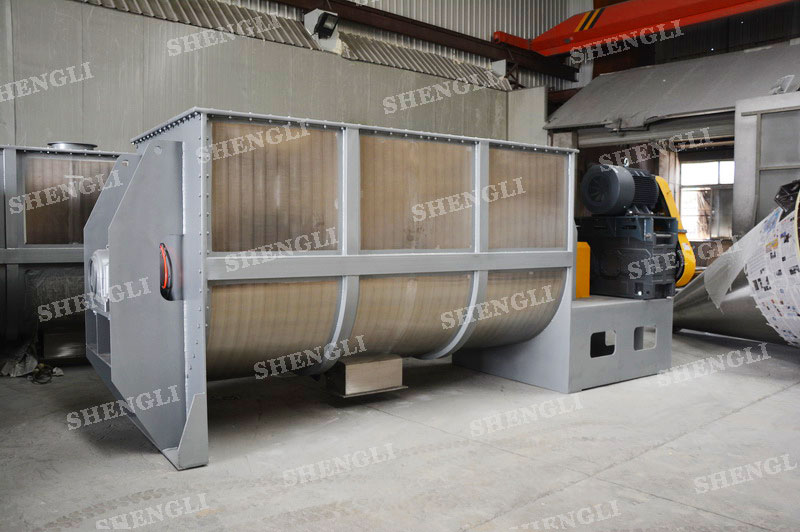 工作原理:臥式攪拌機采用U型筒體,內(nèi)設(shè)平行主軸,主軸上安裝若干傾角式槳葉刀,不僅能快速高效的攪拌物料,且不會破壞物料,不會卡料。