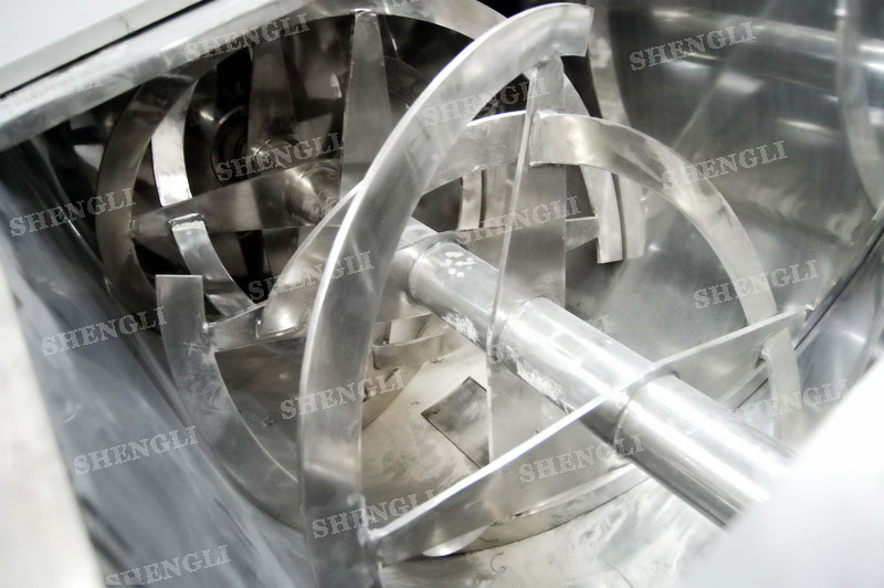 工作原理:螺帶混合機(jī)采用U型筒體,內(nèi)裝平行主軸,主軸上安裝正反雙向的盤條螺帶,不同維度螺帶分內(nèi)螺帶與外螺帶,物料在螺帶的驅(qū)使下反復(fù)參混,能夠快速高效的混合。