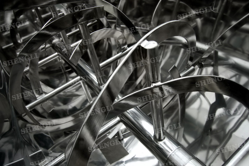 工作原理:螺帶混合設(shè)備采用U型筒體,內(nèi)裝平行主軸,主軸上安裝正反雙向的盤條螺帶,不同維度螺帶分內(nèi)螺帶與外螺帶,物料在螺帶的驅(qū)使下反復(fù)參混,能夠快速高效的混合。