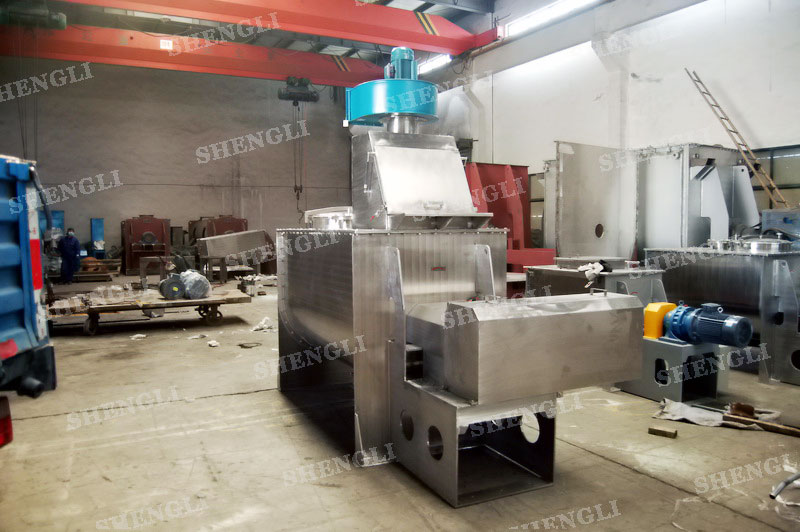 工作原理:螺帶式混合機(jī)采用U型筒體,內(nèi)裝平行主軸,主軸上安裝正反雙向的盤條螺帶,不同維度螺帶分內(nèi)螺帶與外螺帶,物料在螺帶的驅(qū)使下反復(fù)參混,能夠快速高效的混合。