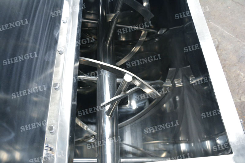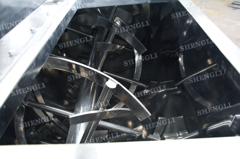 工作原理:螺帶混合設(shè)備采用U型筒體,內(nèi)裝平行主軸,主軸上安裝正反雙向的盤(pán)條螺帶,不同維度螺帶分內(nèi)螺帶與外螺帶,物料在螺帶的驅(qū)使下反復(fù)參混,能夠快速高效的混合。