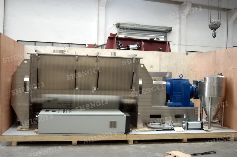 工作原理:螺帶混合機(jī)采用U型筒體,內(nèi)裝平行主軸,主軸上安裝正反雙向的盤條螺帶,不同維度螺帶分內(nèi)螺帶與外螺帶,物料在螺帶的驅(qū)使下反復(fù)參混,能夠快速高效的混合。