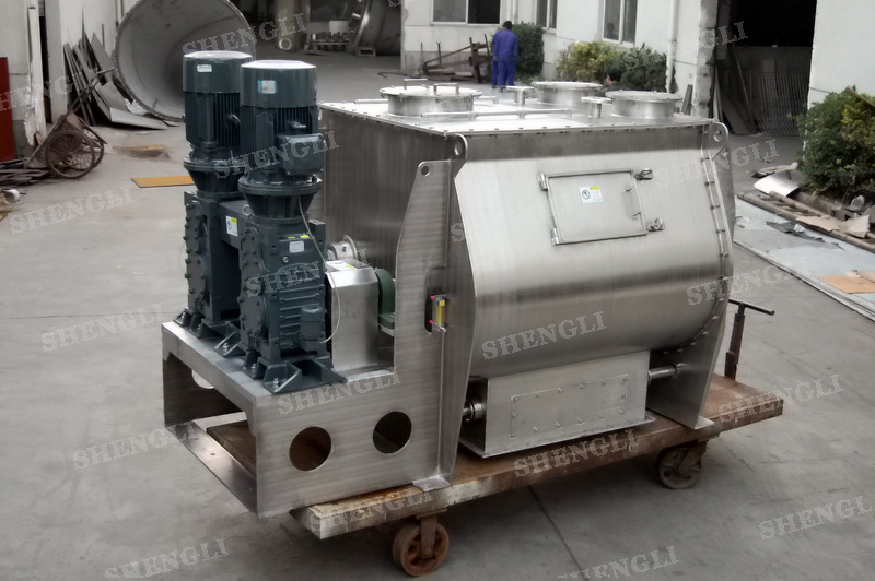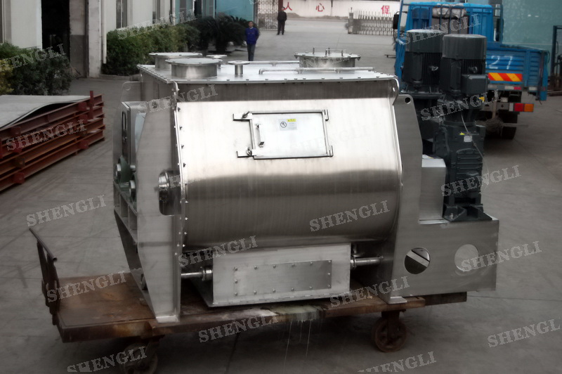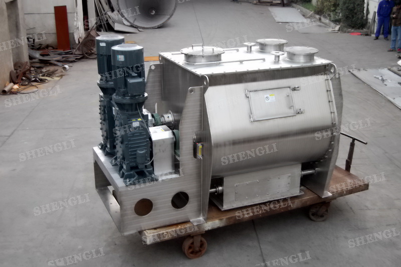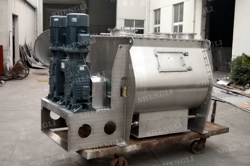 工作原理:無重力雙軸混合機采用雙U型筒體,內(nèi)裝平行的雙主軸,主軸設(shè)有對稱的多組槳葉,其雙軸的運行軌跡部分重合形成嚙合空間,雙軸在受雙電機同步驅(qū)動,同步的對稱向外翻攪物料,致使物料能夠達到瞬間失重點,該設(shè)備具備高效物料無差別的混合能力。