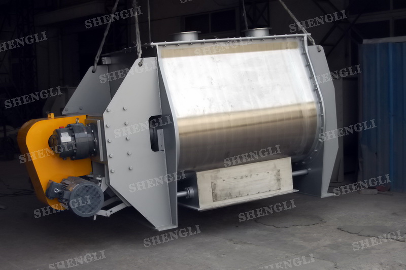 工作原理:無(wú)重力雙軸攪拌機(jī)采用雙U型筒體,內(nèi)裝平行的雙主軸,主軸設(shè)有對(duì)稱(chēng)的多組槳葉,其雙軸的運(yùn)行軌跡部分重合形成嚙合空間,雙軸在受雙電機(jī)同步驅(qū)動(dòng),同步的對(duì)稱(chēng)向外翻攪物料,致使物料能夠達(dá)到瞬間失重點(diǎn),該設(shè)備具備高效物料無(wú)差別的混合能力。