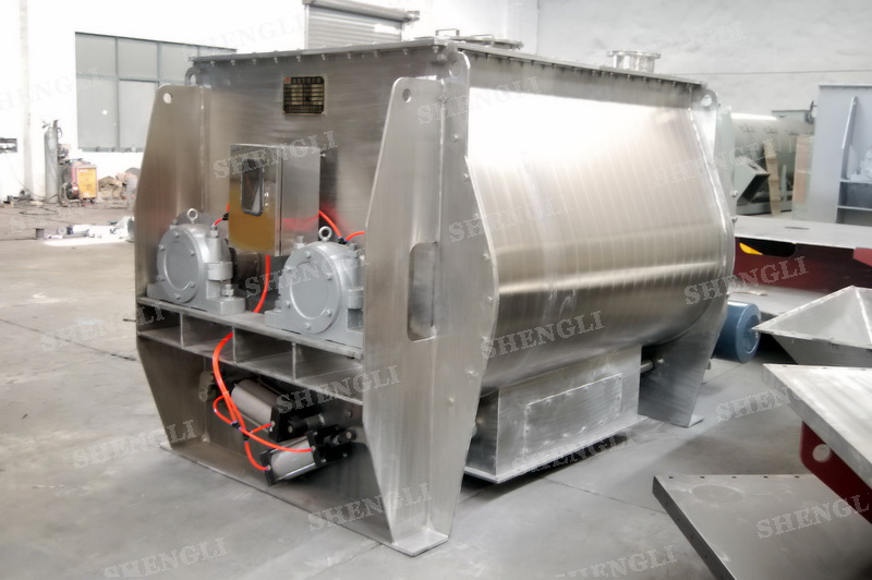工作原理:無重力混合機(jī)采用雙U型筒體,內(nèi)裝平行的雙主軸,主軸設(shè)有對稱的多組槳葉,其雙軸的運(yùn)行軌跡部分重合形成嚙合空間,雙軸在受雙電機(jī)同步驅(qū)動(dòng),同步的對稱向外翻攪物料,致使物料能夠達(dá)到瞬間失重點(diǎn),該設(shè)備具備高效物料無差別的混合能力。